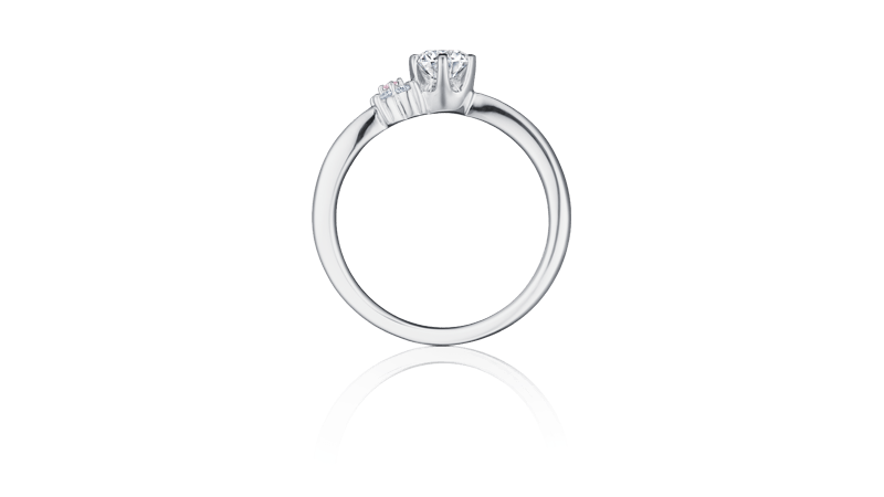 简洁的六爪镶嵌主钻旁增添华丽的小配钻,高雅中带著可爱风格。