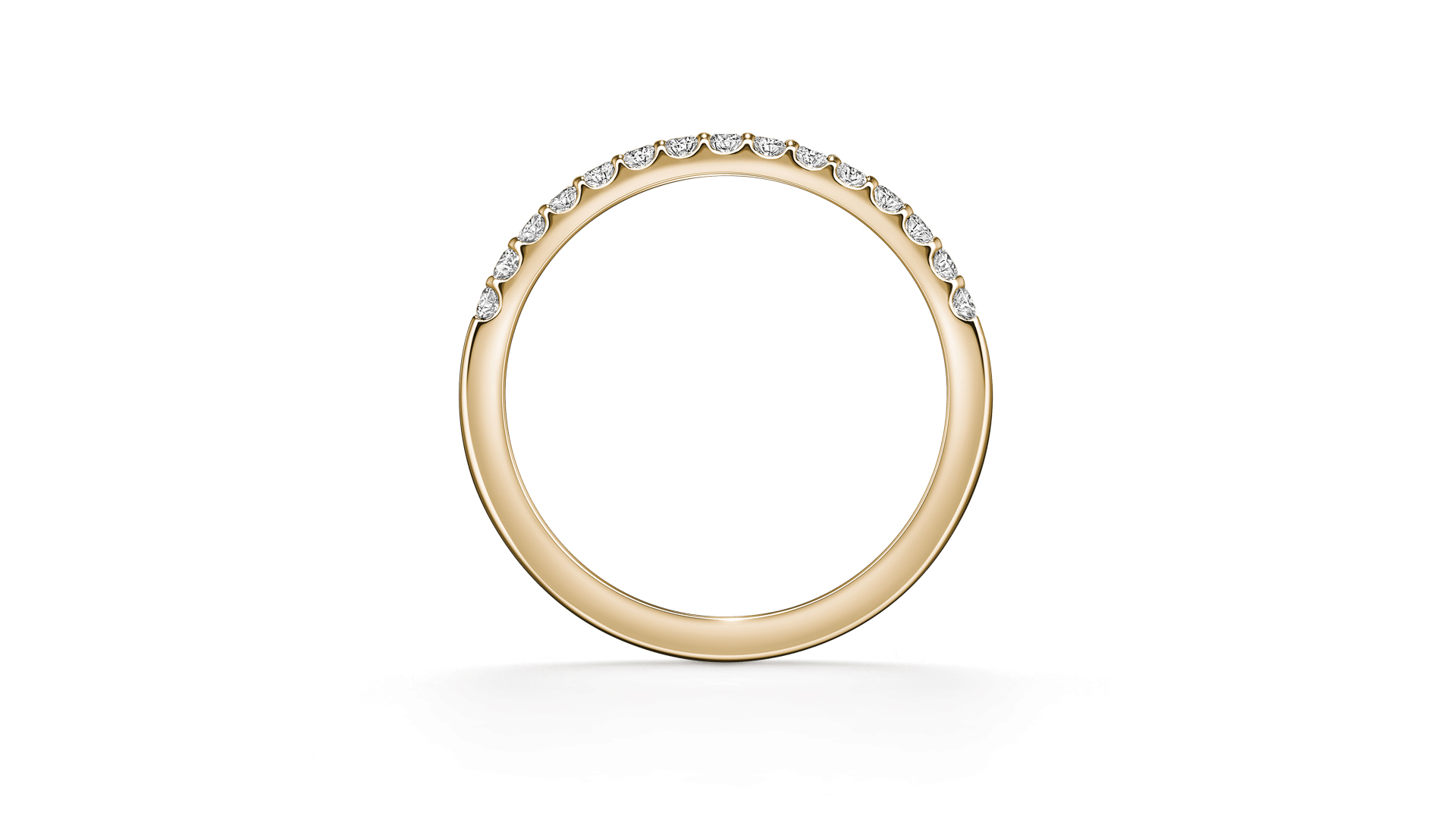 以「天使光环」为名的半圈镶嵌戒指,凸显配钻的细致光芒。造型纤细且具备日常生活适用的强度,方便重叠佩戴的简约百搭设计亦是其魅力所在。