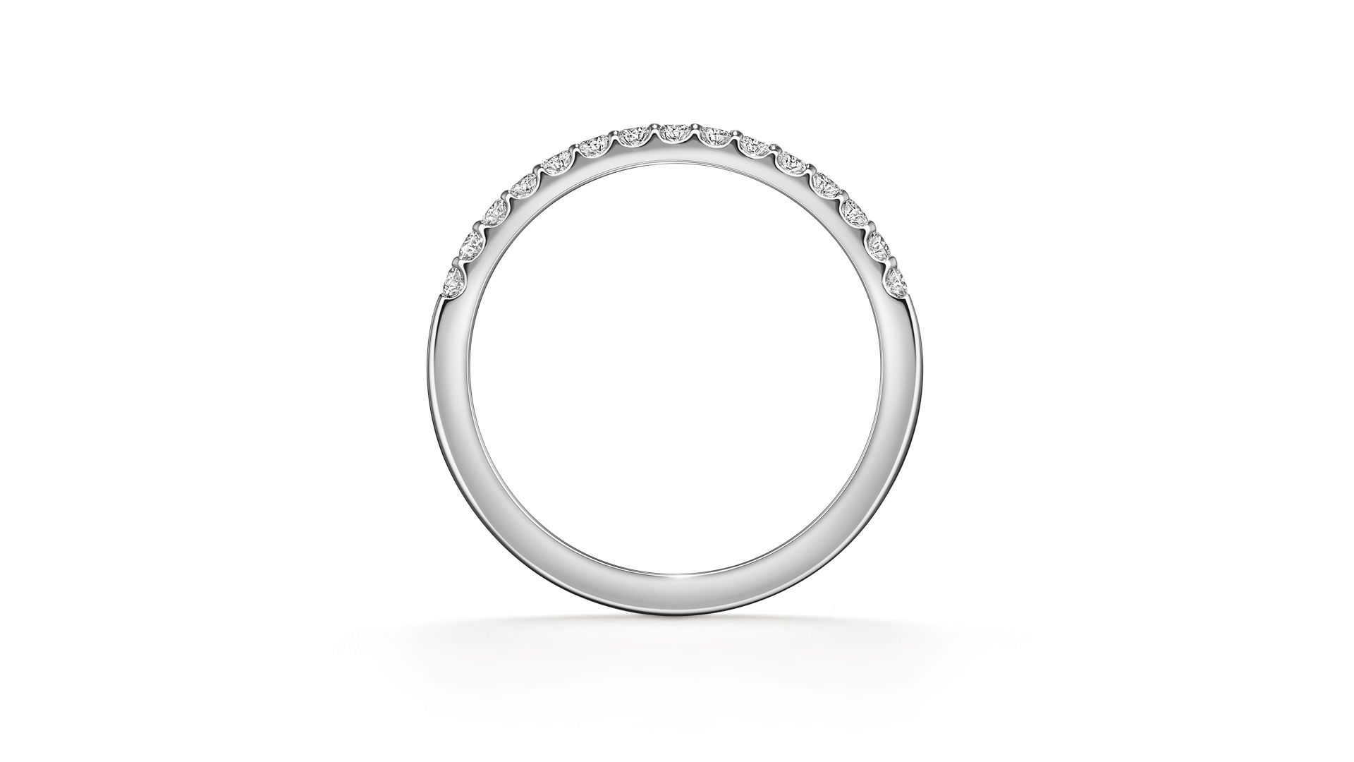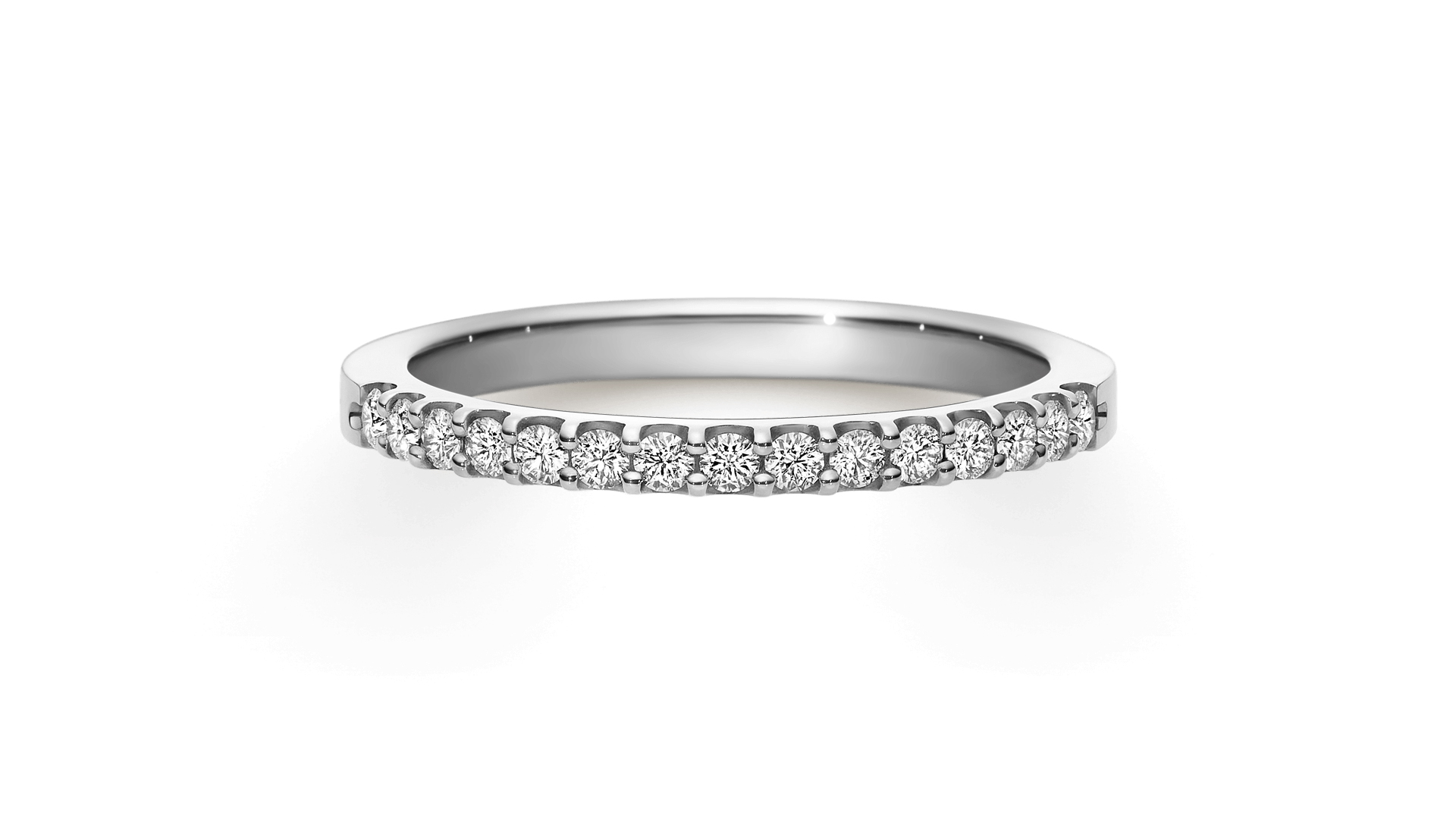 以「天使光环」为名的半圈镶嵌戒指,凸显配钻的细致光芒。造型纤细且具备日常生活适用的强度,方便重叠佩戴的简约百搭设计亦是其魅力所在。