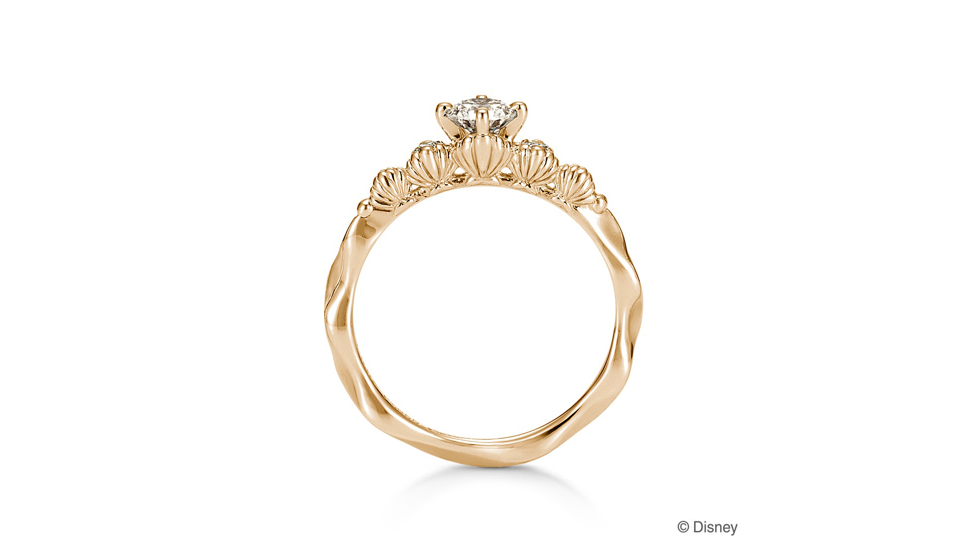 充满律动感、令人雀跃不已的设计,让人联想到缤纷多彩的海底世界。每个贝壳皆表现出立体感,就连细节也毫不妥协。两侧镶有配钻,窄版戒环与极具立体感的设计,让手指呈现利落印象。宛如钻石被贝壳包裹般的镶嵌样式,玩心十足。