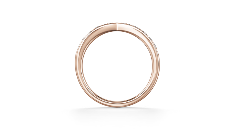 在优雅的收窄戒环上,大方镶嵌10颗钻石的半圈式排钻女戒。