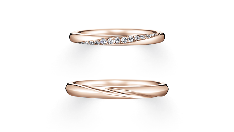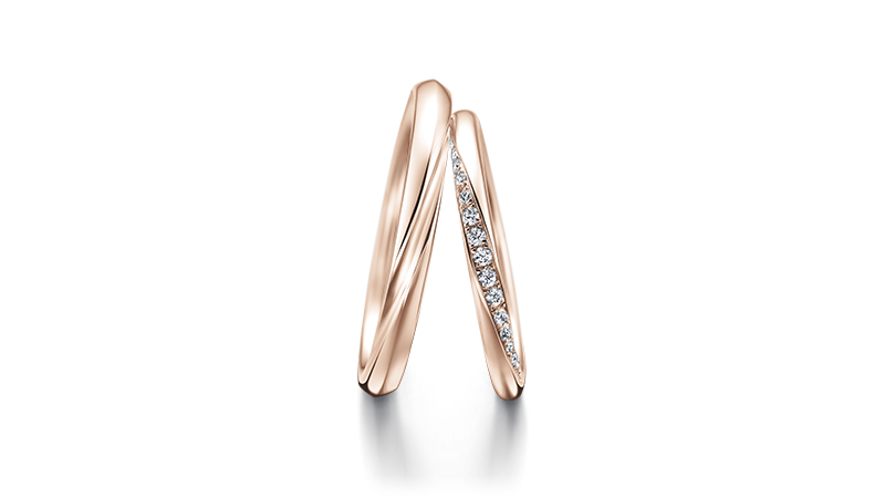 每次配戴,都会使彼此心生力量。凛然的戒环象征「坚强」,流动的配钻线条代表「温柔」。两只戒指交迭,形成两人互相依偎扶持、共创未来的身影。