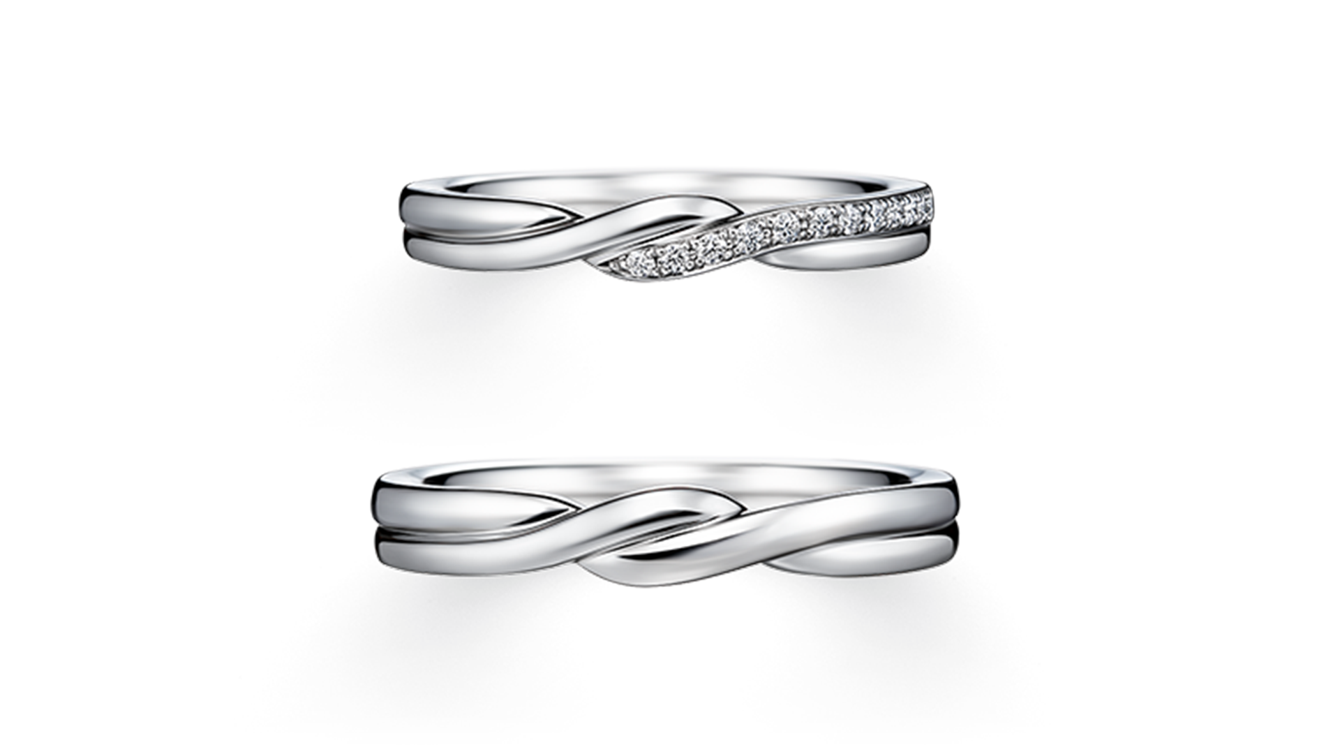 配钻与黄金线条互相交错的戒指,赋予指间优美魅力; 戒指厚实有分量,展现不容忽视的存在感。 直线型戒环上令人印象深刻的扭转造型与双色设计, 在手上散发高雅气质,祝福展开新生活的两人。