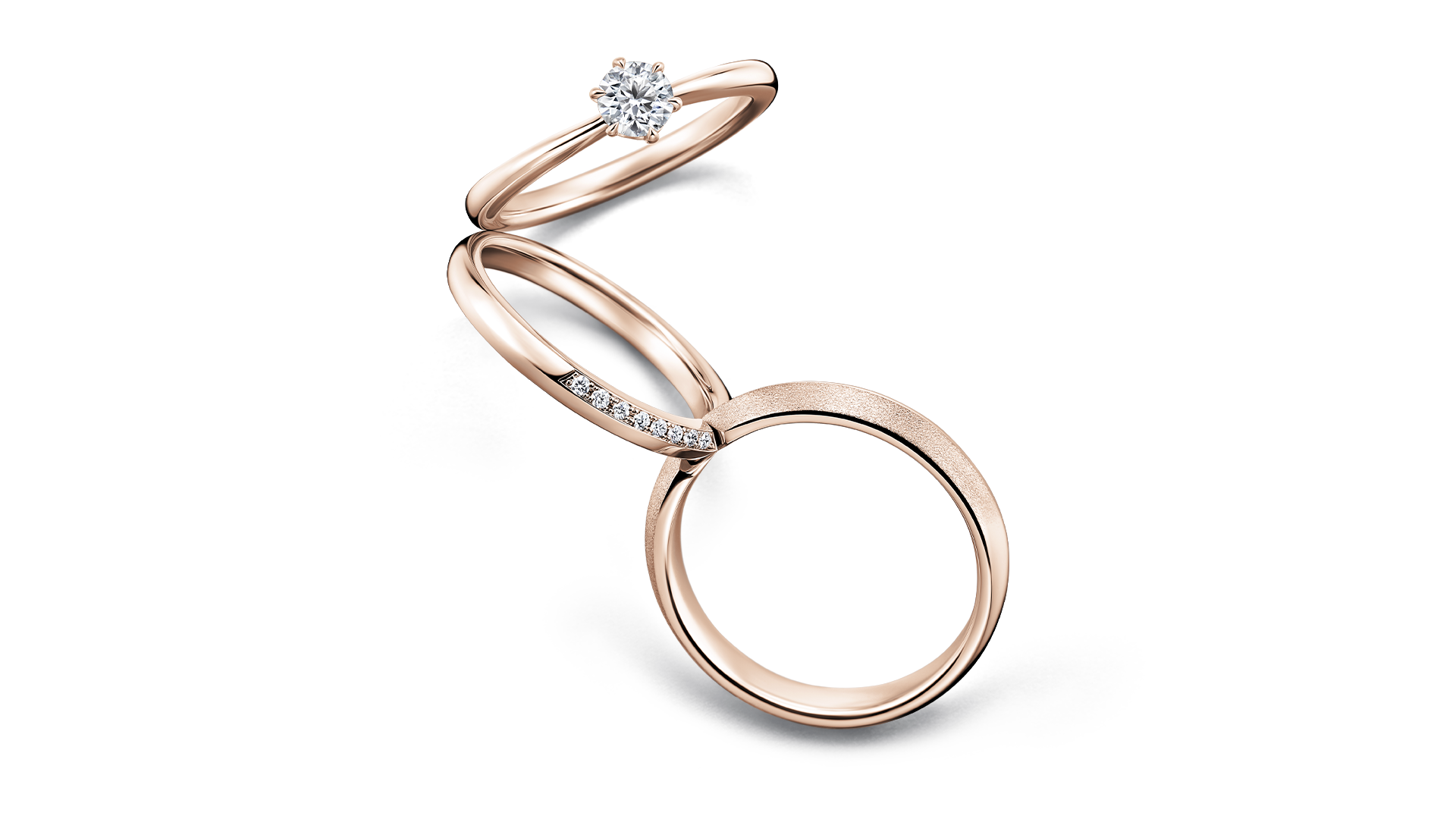 化为戒托的两颗爱心重叠,展开无限(∞)的爱情故事。