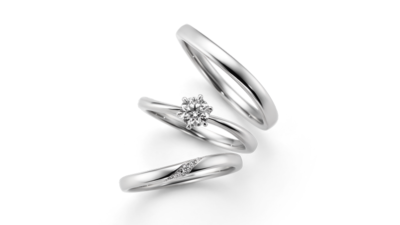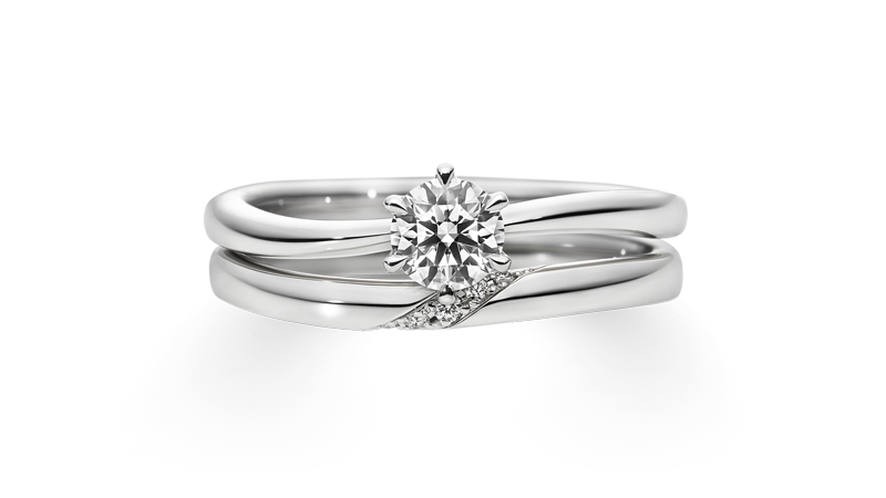 以双子座的1等星而命名的订婚钻戒,与掌管丰收的女神之名的结婚对戒叠带,为手指增添美感。