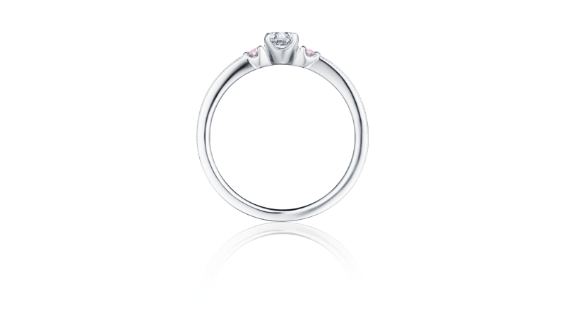 主钻两侧镶上粉红配钻,再加上密钉镶的设计,展现古典风格。