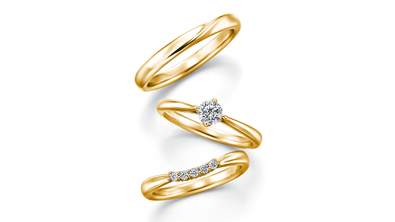 以天蝎座最亮的恒星命名的订婚钻戒,衬托出套戒的优美气质。设计概念来自「女神的天秤」的结婚对戒,以缎带般可爱的V字线条围绕著订婚钻戒。细心调整戒指高度,方便日常配戴,也是这款套戒的魅力所在。