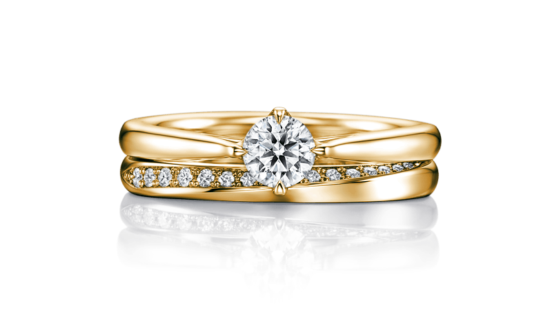 螺旋形车工象征着永恒的爱,Psyche的排钻与求婚钻戒Antiare的主钻互相辉映,相得益彰,更显华美。