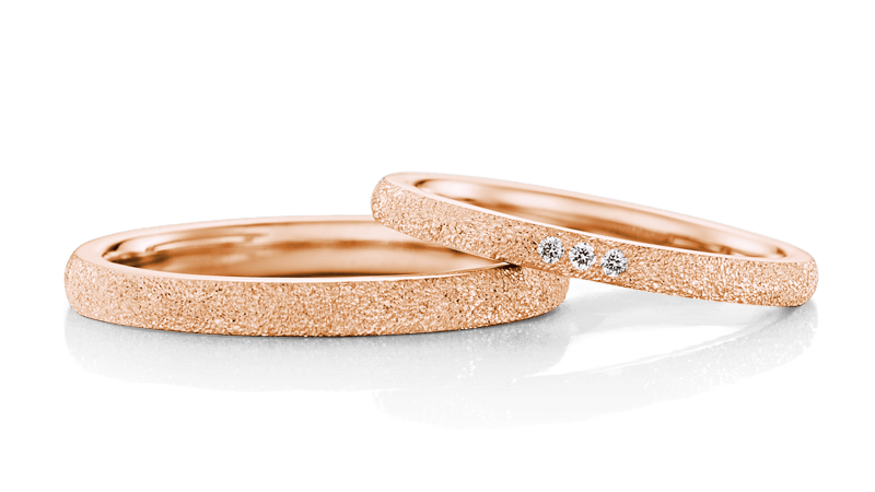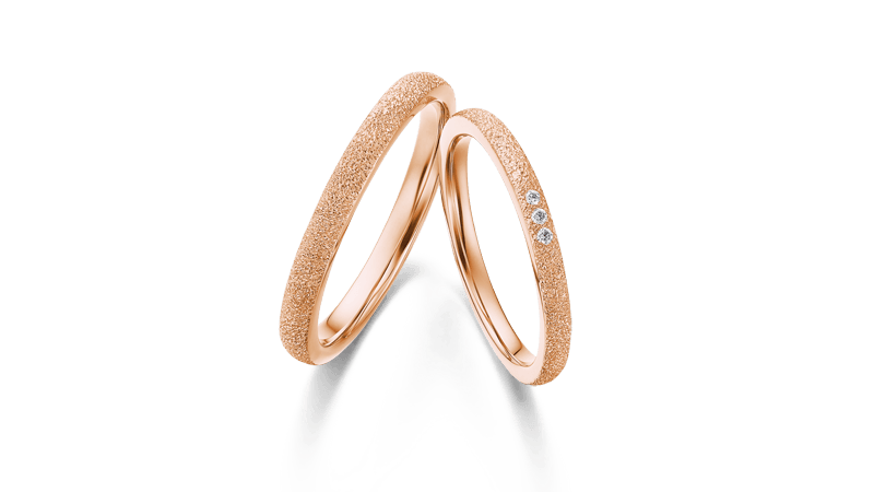 窄版直线型的戒指表面加上星尘加工,散发出闪亮光芒的华丽戒指。