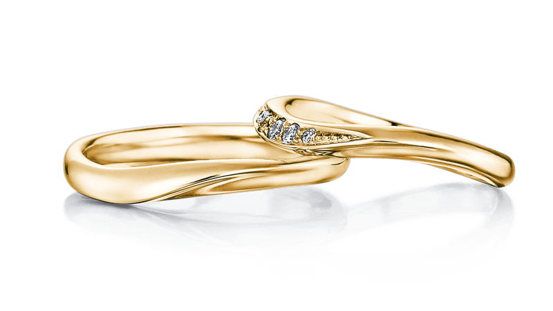 订婚戒指两旁的配钻象征两人的现在和过去,主钻则代表璀璨的未来。搭配简洁柔美线条的结婚戒指,提升整体高雅气息。