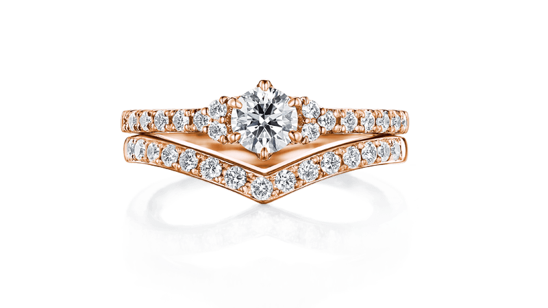 双倍奢华闪耀钻石光芒的套戒组合,V字线条展现出时尚品味。