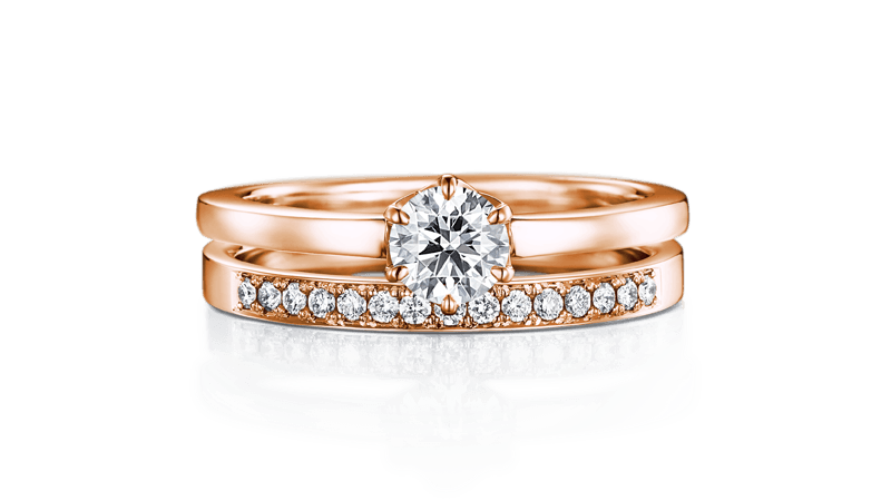 订婚钻戒展现隐藏于纤细中的坚强;结婚对戒带给人简洁却华丽的印象。适合成熟大人佩戴的简约时尚组合。
