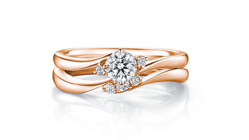与订婚钻戒「kitalpha」纤细的曲线结合的结婚对戒「celeris」。两款戒指戒环中央纤细的线条,倍增中央钻石的份量感,加强闪耀完美光芒。