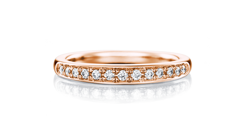 沿著柔和线条镶满配钻的华丽戒指。以配钻突显幸福感的设计,蕴含著「两人迎向幸福未来」的心愿。