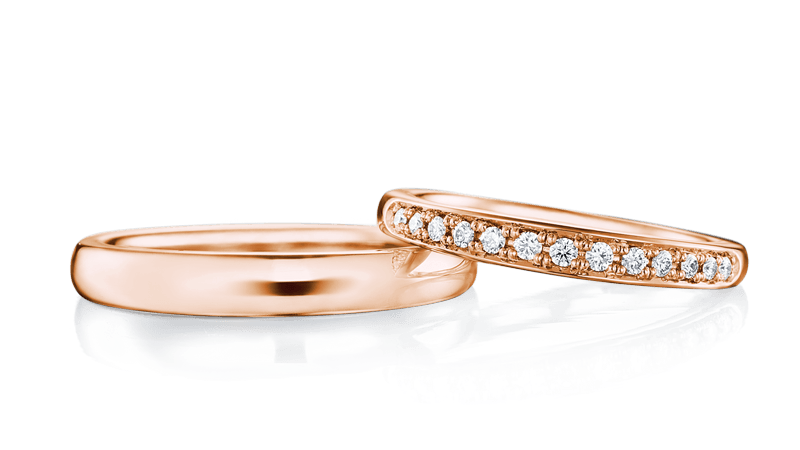 圆润的戒圈加上华丽的配钻组成高雅风格的结婚对戒。