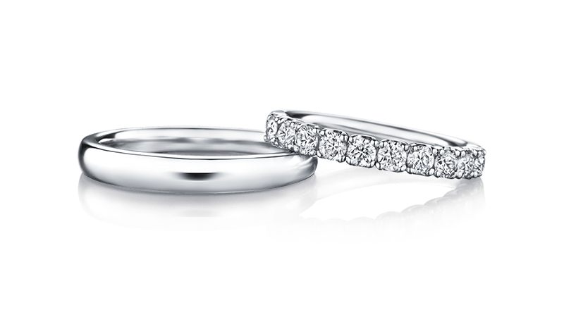 Half Eternity Ring宛如鲜明皎洁月光般闪耀,搭上男戒圆润柔和的戒环,堪称绝配的对戒组合。这场洋溢祝福的灿烂华丽祝辞,是印证两人爱情的选择。