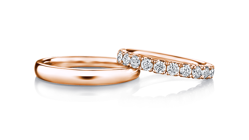 Half Eternity Ring宛如鲜明皎洁月光般闪耀,搭上男戒圆润柔和的戒环,堪称绝配的对戒组合。这场洋溢祝福的灿烂华丽祝辞,是印证两人爱情的选择。