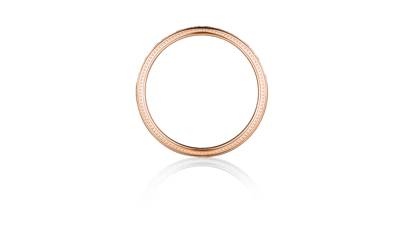环绕戒环整圈的密钉镶象徵著「永远」,古典雅致的设计风格,非常适合做为象徵誓言的戒指。