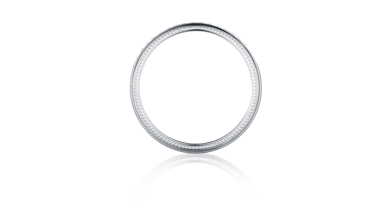 大小一致的颗粒整齐排列,以纤细美丽的镶边做为特色。『HELIOS』则是以双胞胎的太阳神命名。整体镶满18颗配钻,属于窄版的Eternity Ring。