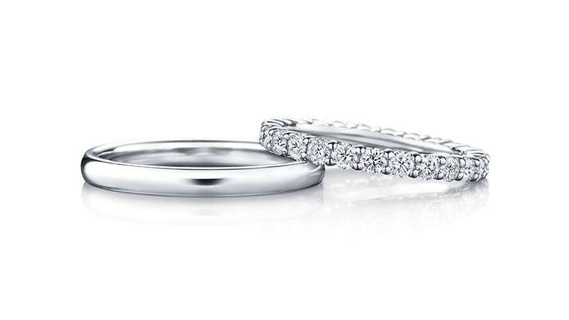 Full Eternity Ring「Mani」的整圈钻石设计,恰如其分地表现出永恒情缘。取名于婚姻女神之名的男戒设计简约光滑,恰如其分的衬托出女戒的绚丽奢华,绝妙搭配倾倒众人。