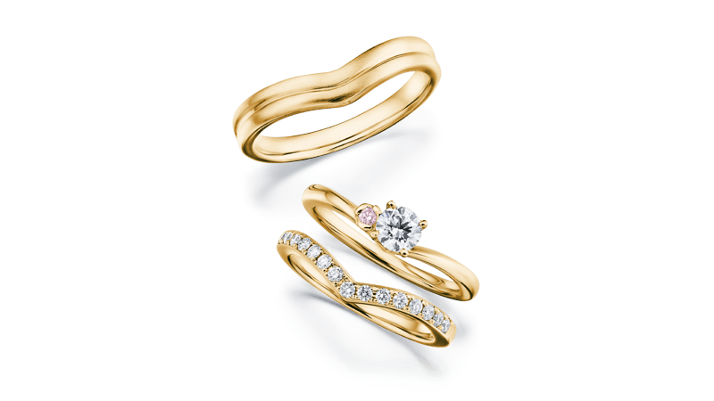 V型戒款修饰手部线条,彰显主钻之美。华丽的钻石光芒搭配粉红配钻,散发洗练成熟的可爱感。