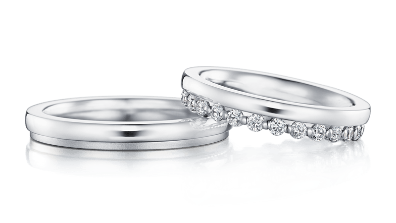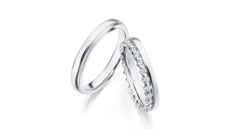 以月之女神『Luna』命名设计的结婚对戒,颗颗精致镶钻,宛如月光辉映。