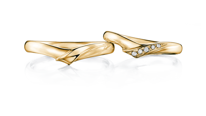 流畅的V字型型结婚对戒,戒环上添加柔和的扭转线条给人柔美印象。配置优雅V字型线条让指尖更显华美。