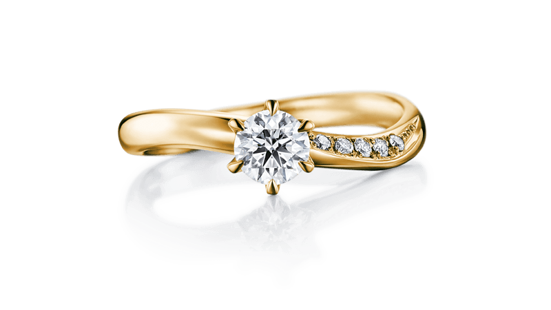 浪漫的戒身曲线单边镶嵌上美丽的配钻独特设计的订婚钻戒