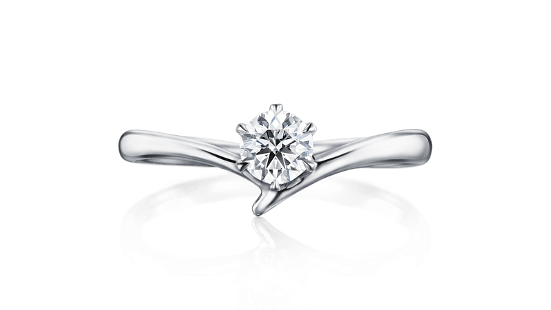 V字型型戒环以六爪镶嵌钻石,放大主钻视觉效果的设计。