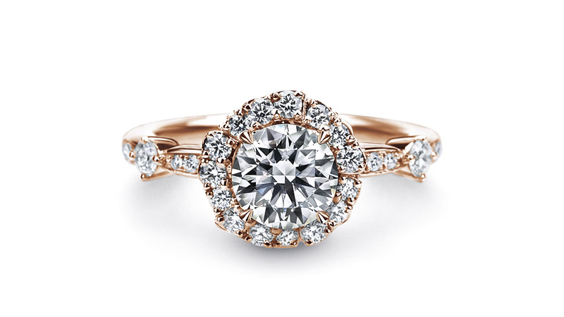Rosette Nebula 钻戒使用60多颗配钻缔造出玫瑰花瓣形状,包裹,衬托出中央主钻的光芒。