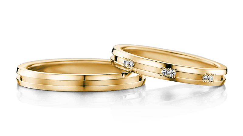 不间断的线条,代表了两人的爱直到永远。女戒上镶嵌的配钻,象征两人的人生从此结合,永恒不变的爱。「SAGA」是真言的女神。