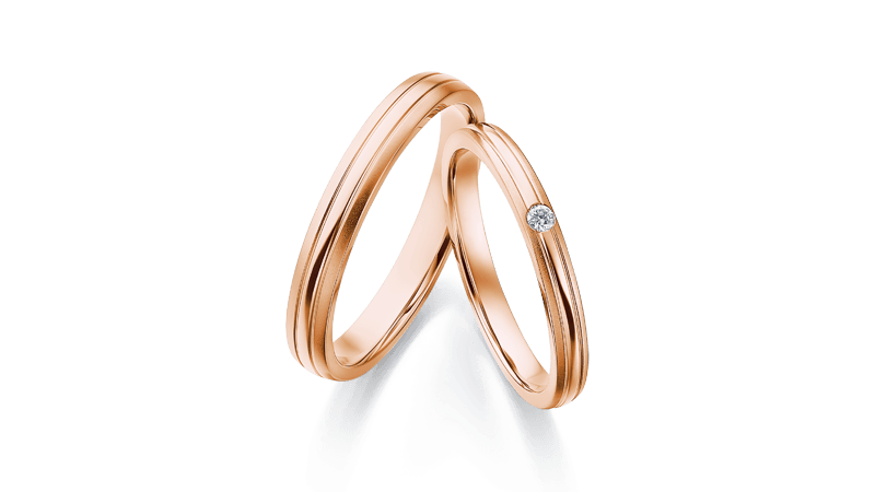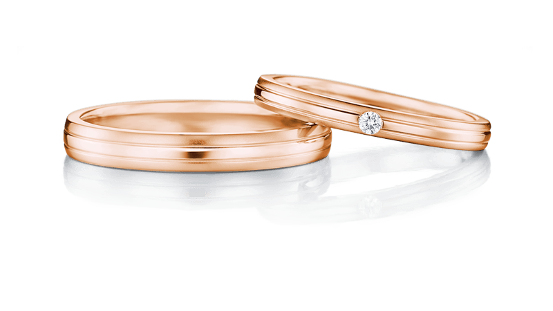 舒适佩戴感的窄版结婚对戒。镜面与雾面的对比设计饶富趣味。