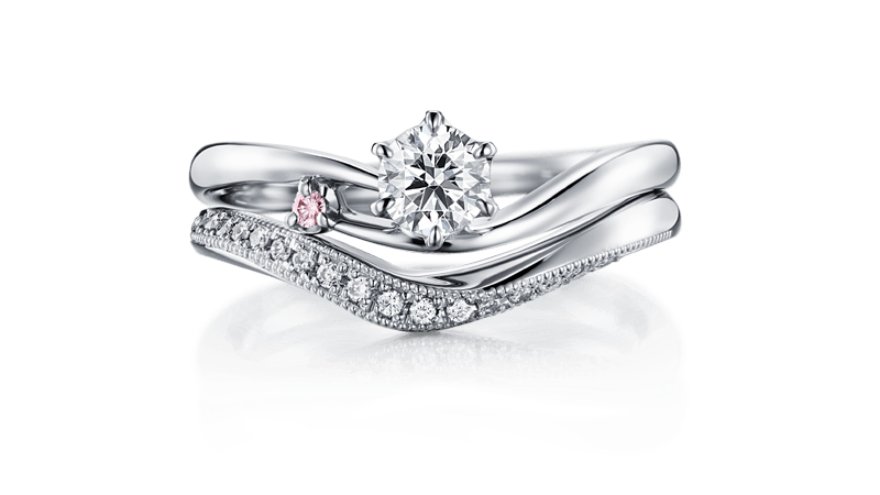 个性化的不对称设计,兼具简约与华丽的组合。结婚对戒的细致滚珠边,带给人古典高雅的印象。
