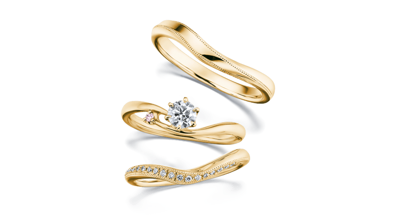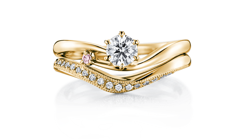 个性化的不对称设计,兼具简约与华丽的组合。结婚对戒的细致滚珠边,带给人古典高雅的印象。