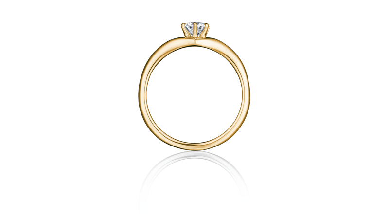 为了让钻石更显耀眼,特别将靠近主钻的戒环修细,凸显单颗主钻的款式。V字型型线条让指尖更显修长。名称则是取自拥有「不妥协的信念」星语的星星。
