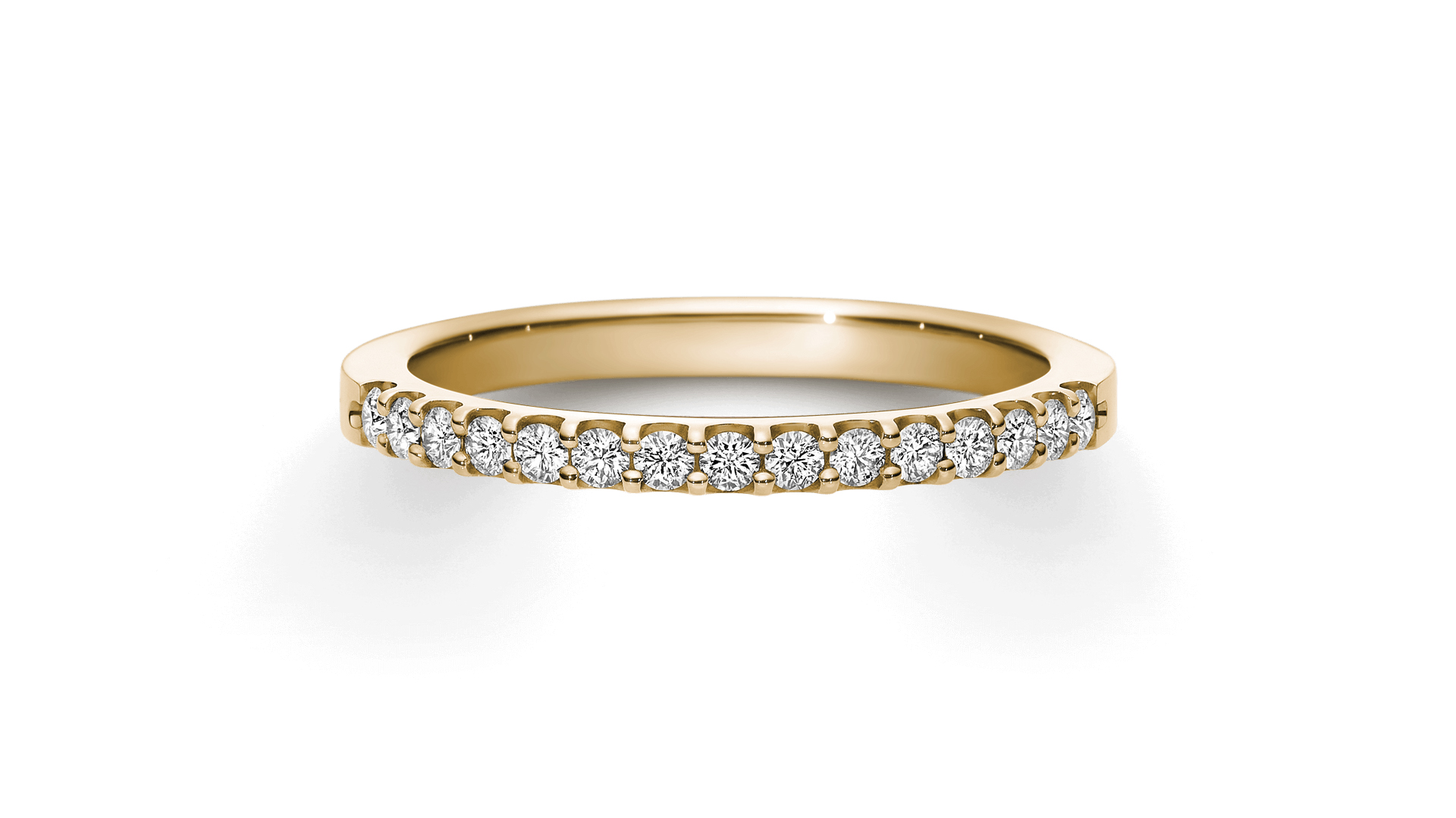 以「天使光环」为名的半圈镶嵌戒指,凸显配钻的细致光芒。造型纤细且具备日常生活适用的强度,方便重叠佩戴的简约百搭设计亦是其魅力所在。