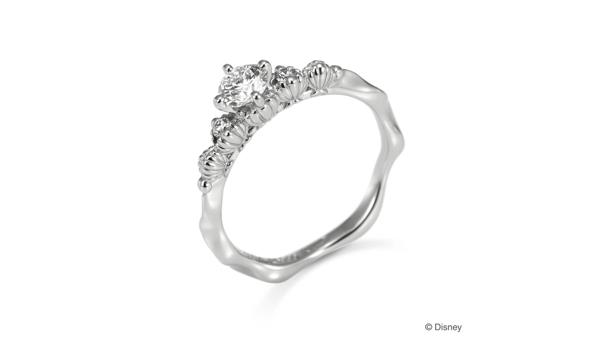 充满律动感、令人雀跃不已的设计,让人联想到缤纷多彩的海底世界。每个贝壳皆表现出立体感,就连细节也毫不妥协。两侧镶有配钻,窄版戒环与极具立体感的设计,让手指呈现利落印象。宛如钻石被贝壳包裹般的镶嵌样式,玩心十足。