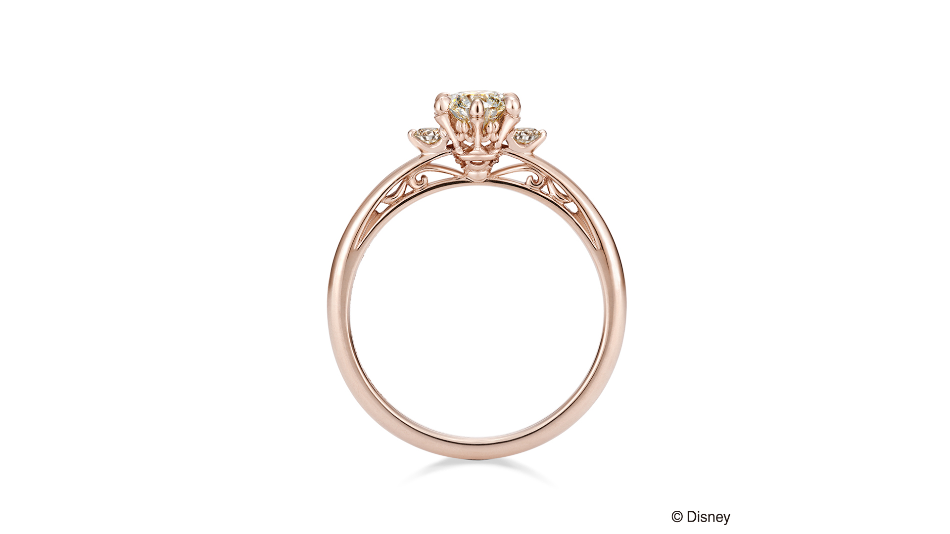 此款戒指以在宴会舞厅跳舞的“贝儿”与“野兽”为意象。侧面以镂空图样低调巧妙地融入蜡烛及装饰品等主题,演绎出电影的世界观。