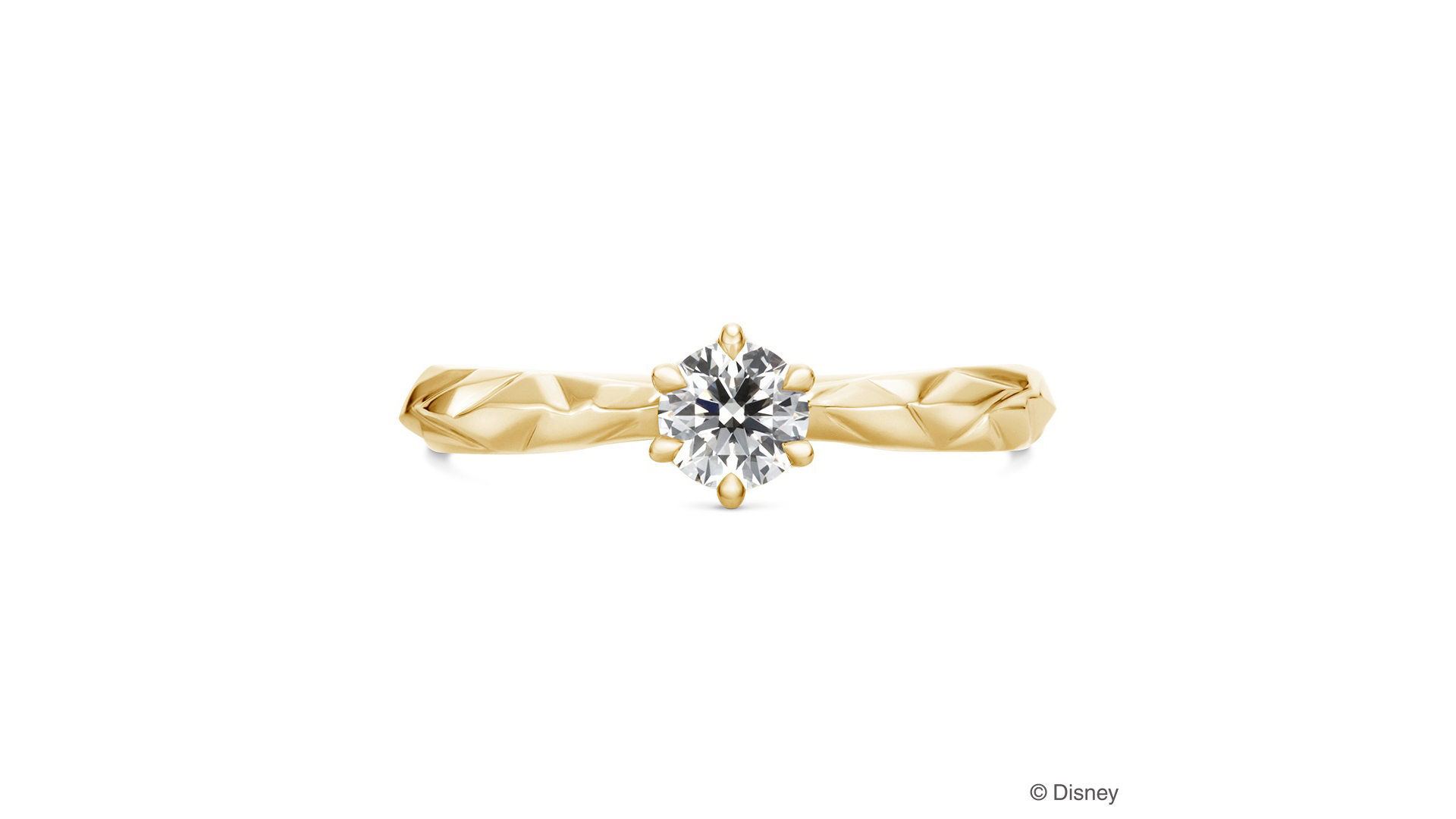 以《冰雪奇缘》为主题的订婚钻戒。戒环的冰雪世界意象与钻石璀璨光芒,给人凛然印象。戒指侧面所看见的座台部分,其设计是采用“艾莎女王”建造冰雪城堡时所登场的阶梯栏杆图样。戒环部分亦反射光线,灿烂耀眼。