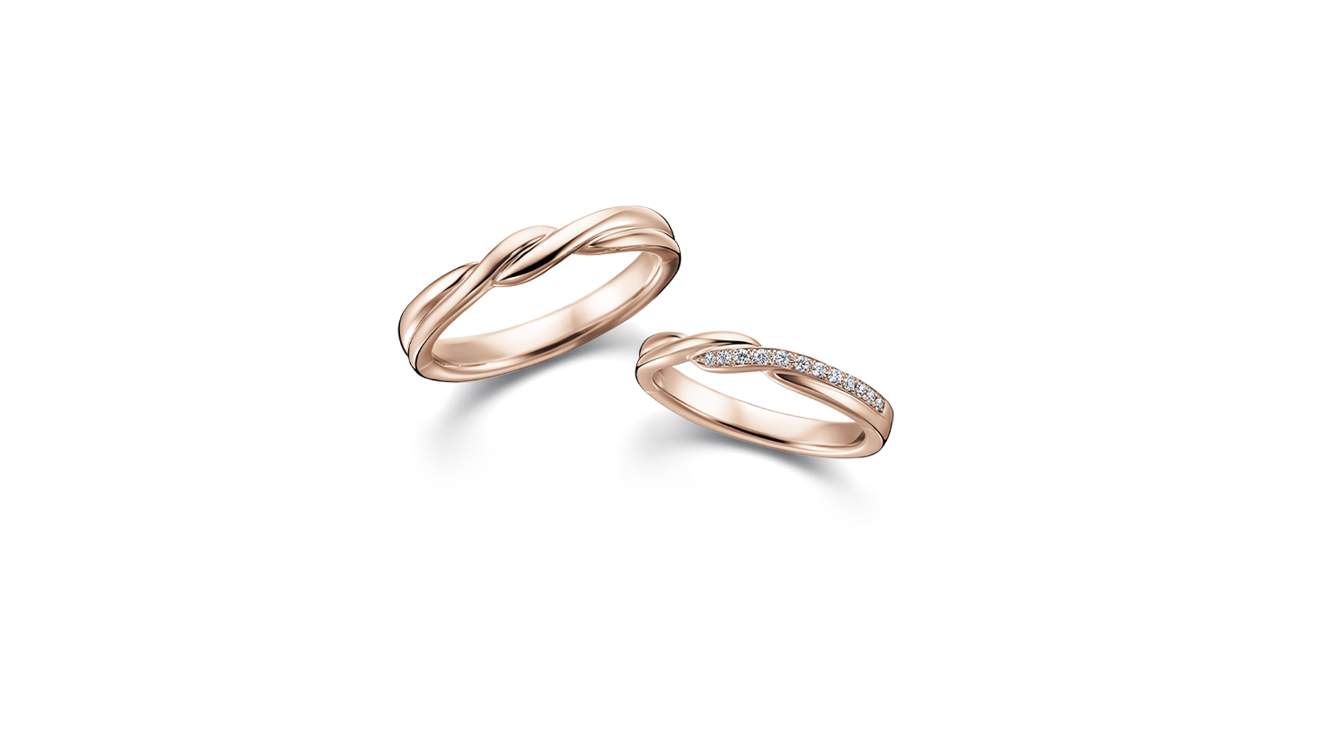 配钻与黄金线条互相交错的戒指,赋予指间优美魅力; 戒指厚实有分量,展现不容忽视的存在感。 直线型戒环上令人印象深刻的扭转造型与双色设计, 在手上散发高雅气质,祝福展开新生活的两人。