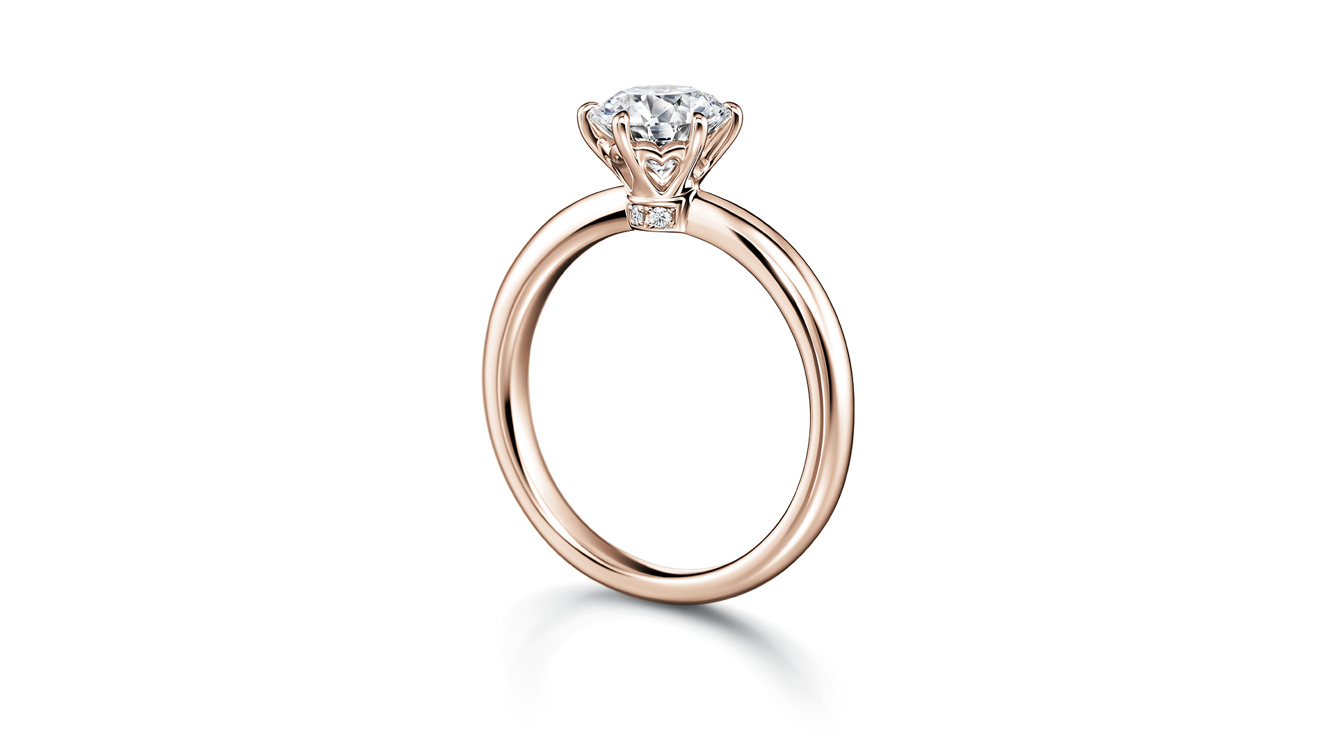 双色组合的单钻戒指上闪耀的一等星, 散发着不容忽视的华丽气质。 令人难忘的侧边设计,象征着两人的连接。