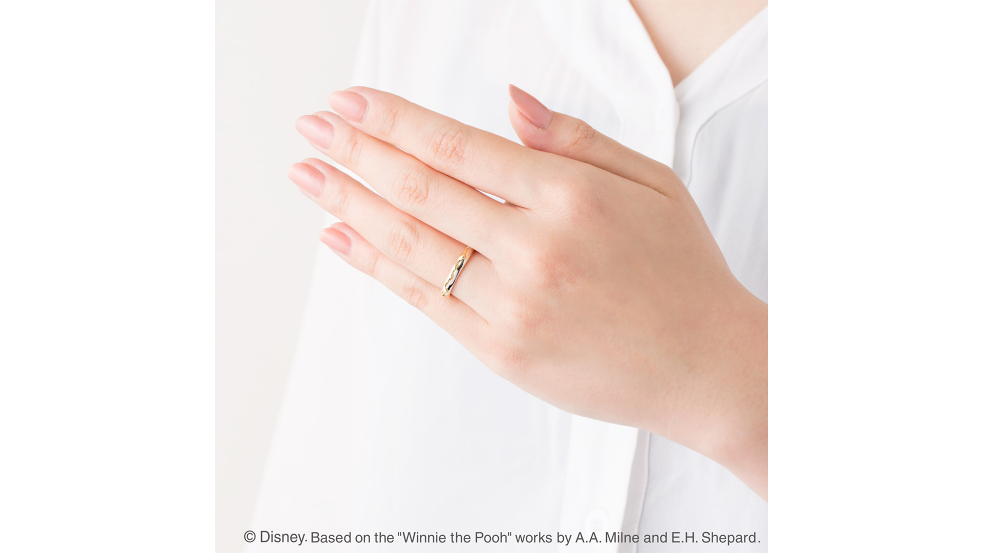 将“小熊维尼”最爱的蜂蜜融化模样,设计为结婚对戒。覆盖于戒指上的是代表「可爱之人」的「Sweet Honey」,当中蕴含着希望两人永远融洽甜蜜的心愿。