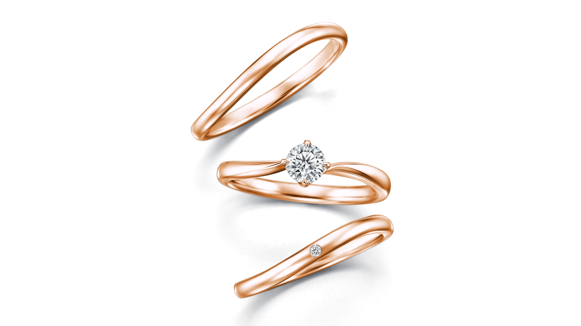 宛如雪白羽翼般的波浪线条,轻柔包覆手指的结婚套戒。