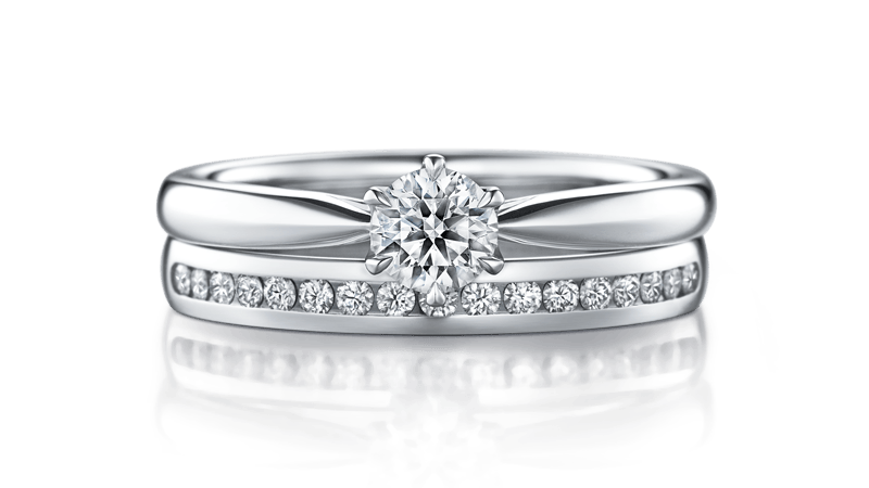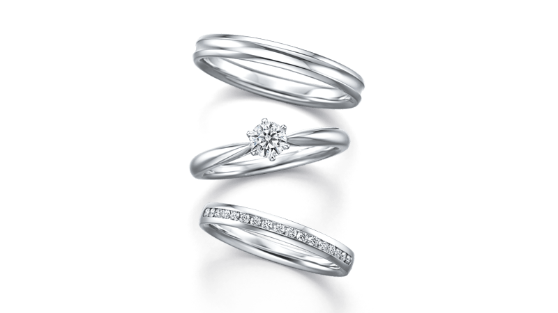 由拥有耀眼主钻的优美订婚钻戒「altair」,以及有着优雅高洁风貌的结婚戒指「charis」所组成的高雅套戒。