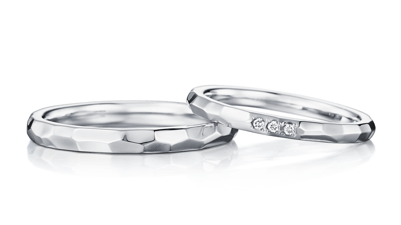 在直线戒环的表面上做出锤状花纹。以柔和的表面变化产生丰富的阴影效果。