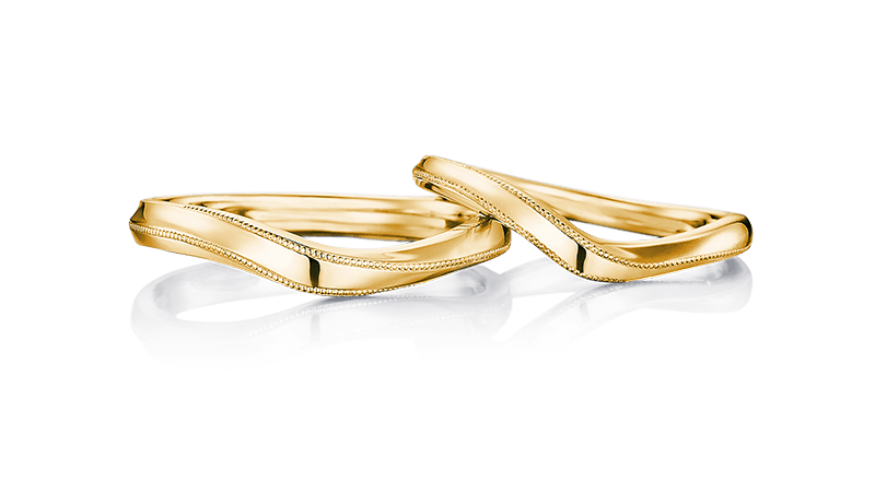 戒指名称源于为相爱佳偶献上祝福的精灵之名,寓意为其带来幸福。密钉镶滚边环绕在优雅的波浪线条上,散发出古典光环与柔美气质,妆点指尖。