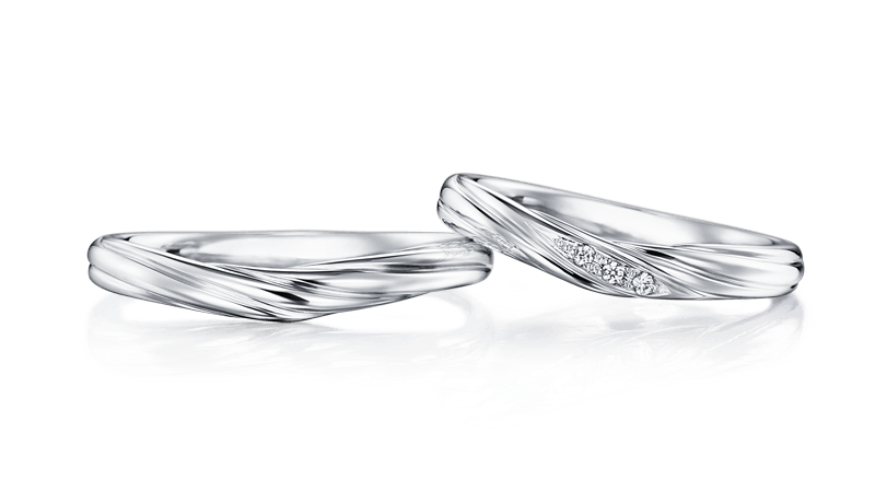 女戒的配钻镶嵌在波浪曲线上。多重层叠的设计,象征著两人层层情意。星星女神『ASTERIA』守护著两人的未来。