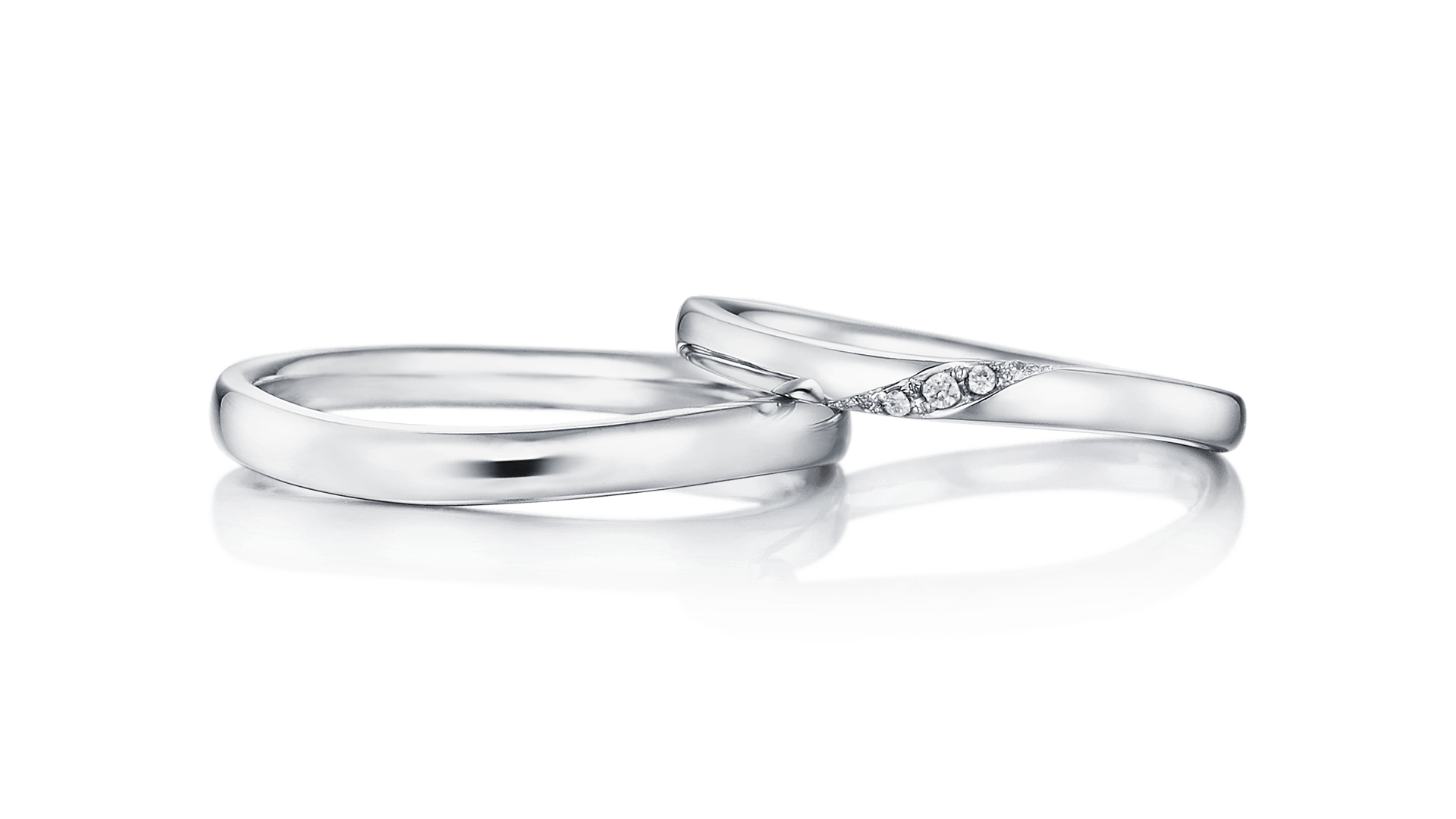 使手指看起来简洁有魅力的窄版对戒,让人忍不住想举手摆动欣赏钻石的耀眼光辉。