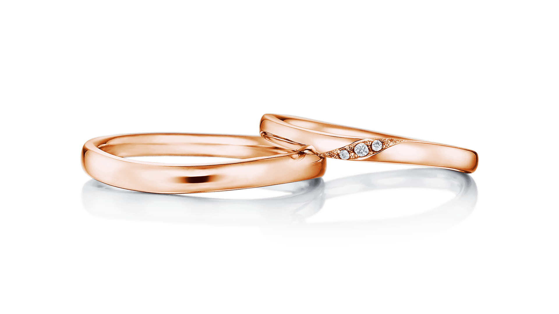 使手指看起来简洁有魅力的窄版对戒,让人忍不住想举手摆动欣赏钻石的耀眼光辉。