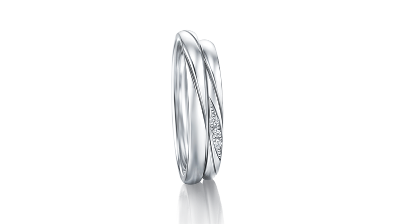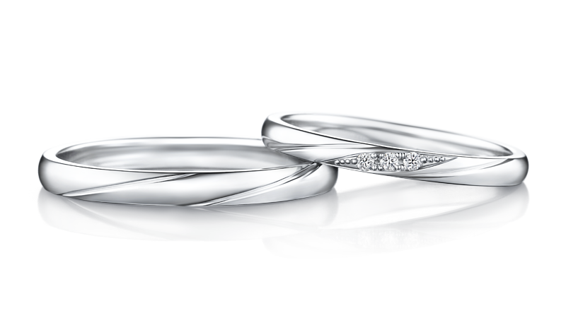以互相追逐的两道线条轨迹,展现清新脱俗的爱情。象征两人坚定不移的感情,合而为一、相互依偎。戒指犹如贤者射出的箭,鲜明地描绘出二人迈向未来的幸福轨迹。